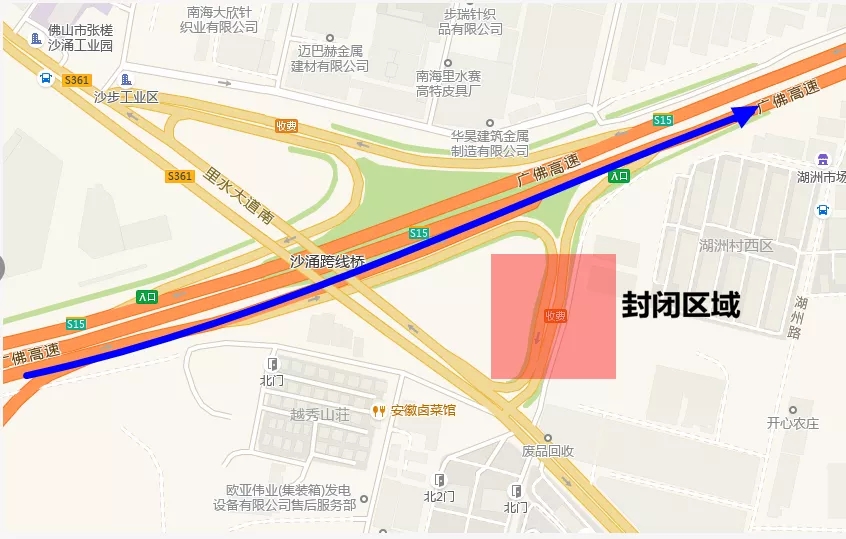 2、广佛高速→沙涌收费站(往佛山方向可正常通行)→里水大道