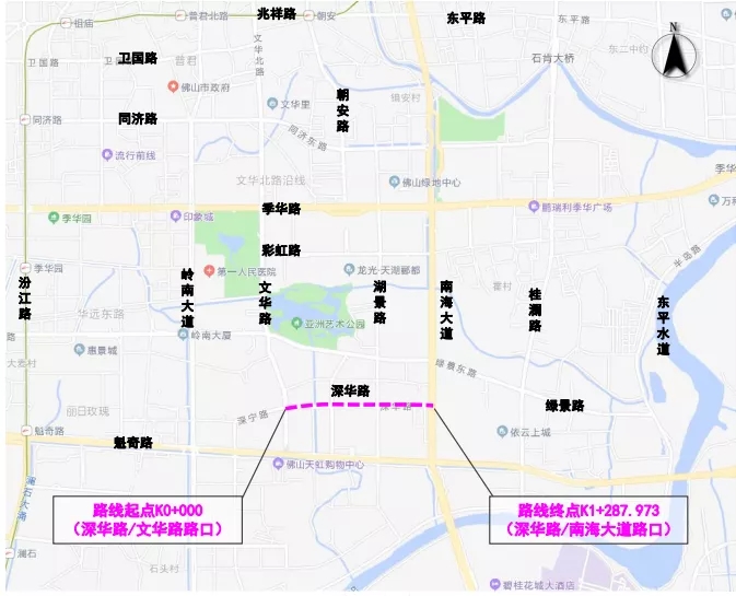 自2022年1月1日10:00时起至2022年1月30日24:00对深华路(文华路至南海大道)分阶段占道,双向六车道缩窄为双向四车道。