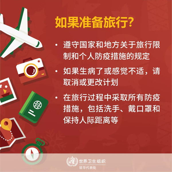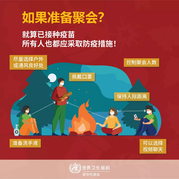 世界卫生组织提醒,任何规模的聚会都有可能传播新冠肺炎。如果自己或准备一起过节的人感到不适,请务必取消或更改计划。
