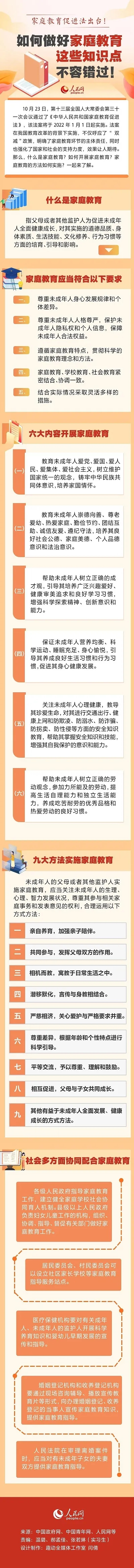 国家对家庭教育支持的力度更大了。法律明确了家庭教育的概念,同时规定了国家支持家庭教育的举措、学校等社会力量对家庭教育的协同任务,随着相关配套措施的出台,将对提升家长的家庭教育能力起到大的帮助。
