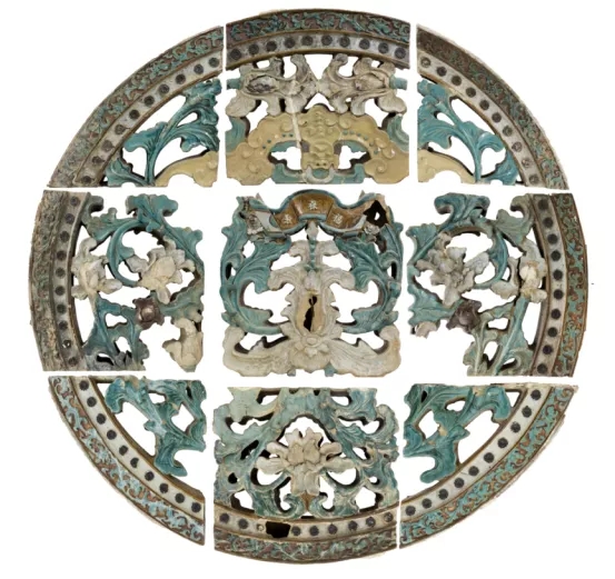 近日,佛山市博物馆对多件石湾窑陶塑圆花窗完成了珍贵文物定级工作。该批透雕圆花窗来自于清末石湾窑,尺寸硕大,来自于同一建筑,成组成套,存世量不多,十分珍贵。