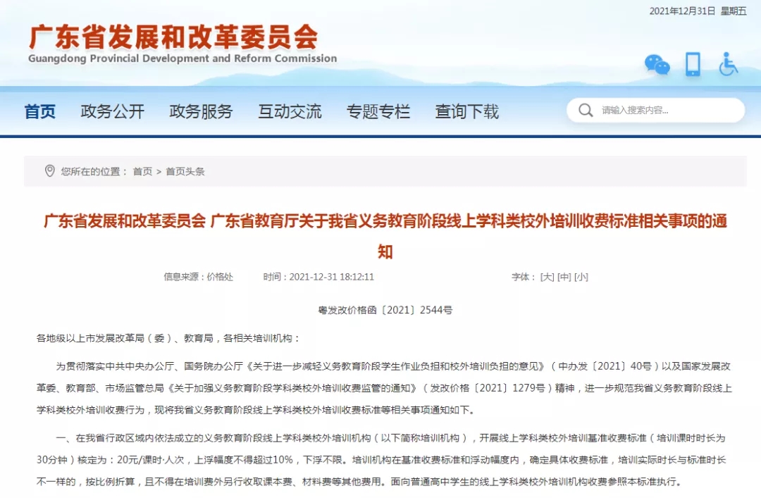 概述:近日,广东省发改委、广东省教育厅发出《我省义务教育阶段线上学科类校外培训收费标准相关事项的通知》......