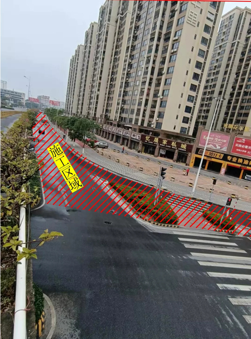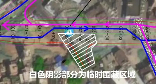 石头大道中段50米范围内。(下图中白色阴影区域为施工围蔽区域)