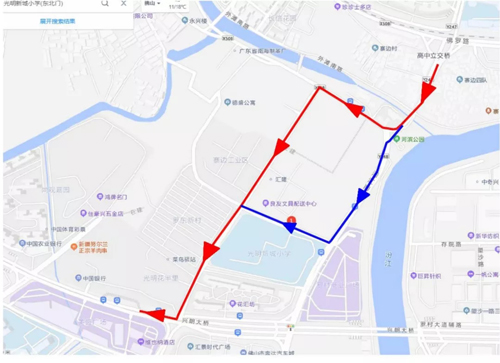 2、朗沙→光明大道→美盛广场南侧道路→纵一路→罗村大道佛山西站方向(或禅城方向)
