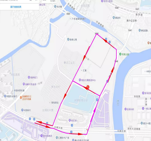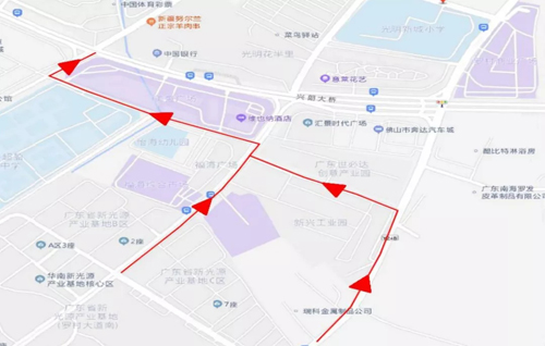 2、罗村大道→沿江南路→横一路→紫罗路→罗村大道(佛山西站方向)
