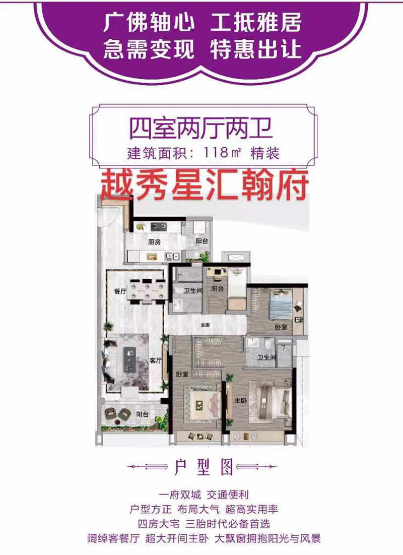 佛山南海桂城越秀星汇瀚府 户型方正 精装修超高使用率