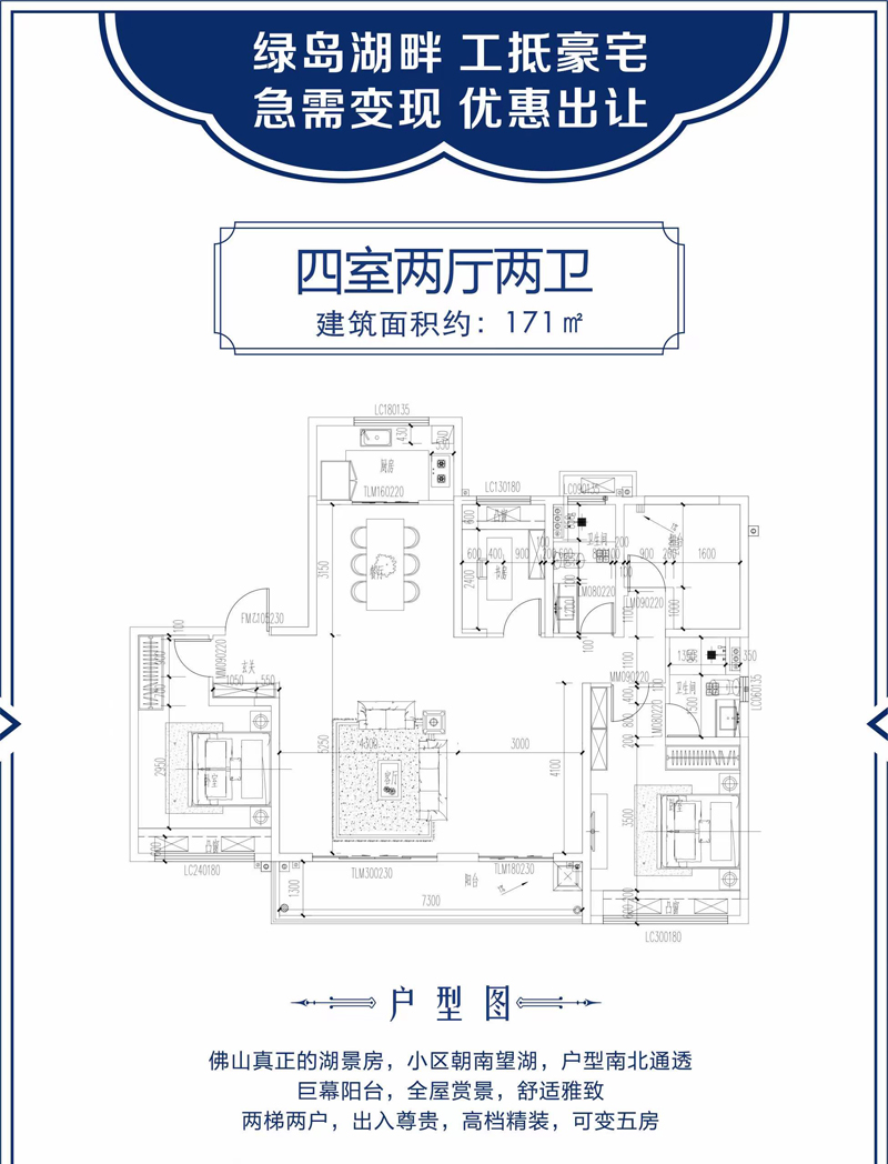 阳光城·佛山半岛 一线湖景大阳台 4室2厅 171㎡