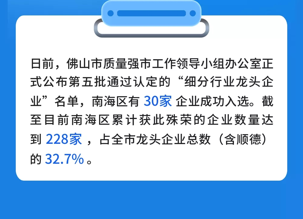 一直以来,南海区市场监管局不断创新工作方式,大力推动企业争创佛山市“细分行业龙头企业”,带动产业高质量发展。