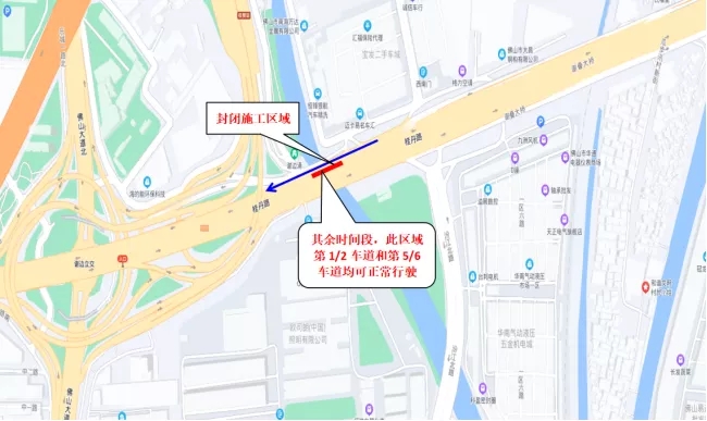 在此期间需要途经谢边河中桥右幅(即桂城往丹灶方向)的过往车辆,请提前规划出行路线,注意现场交通指引,留意交通状况。