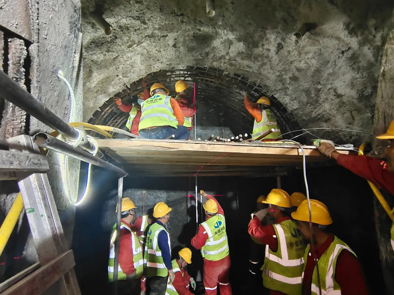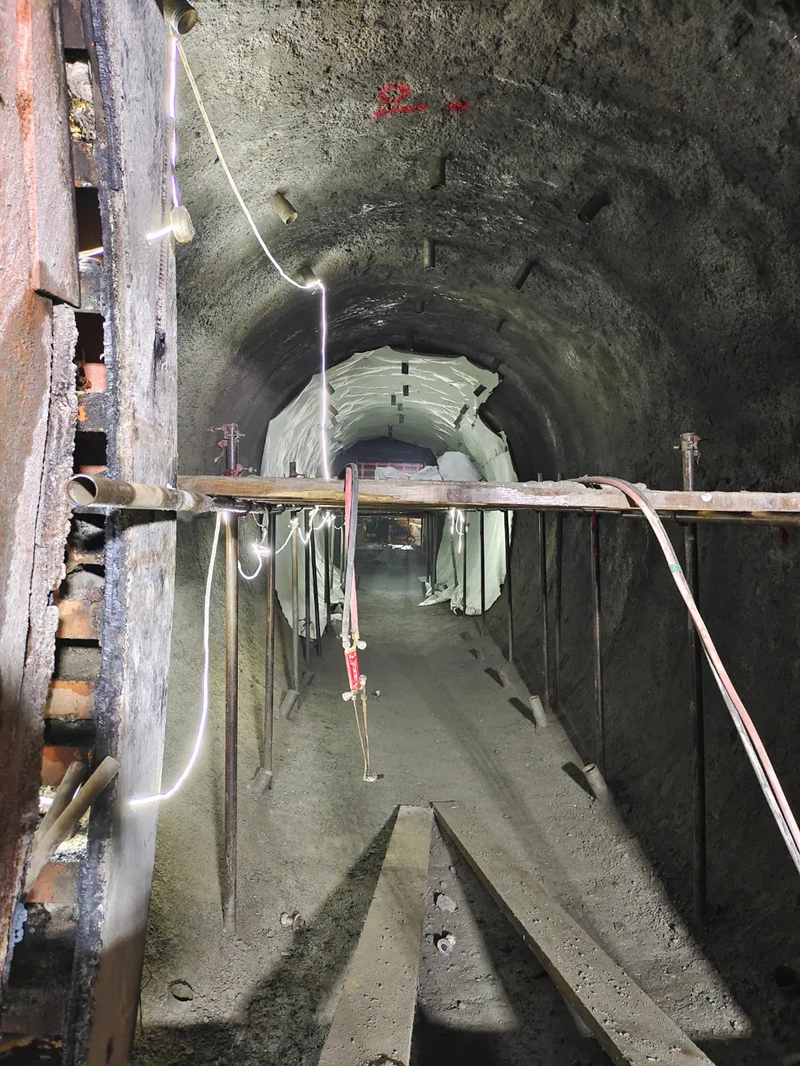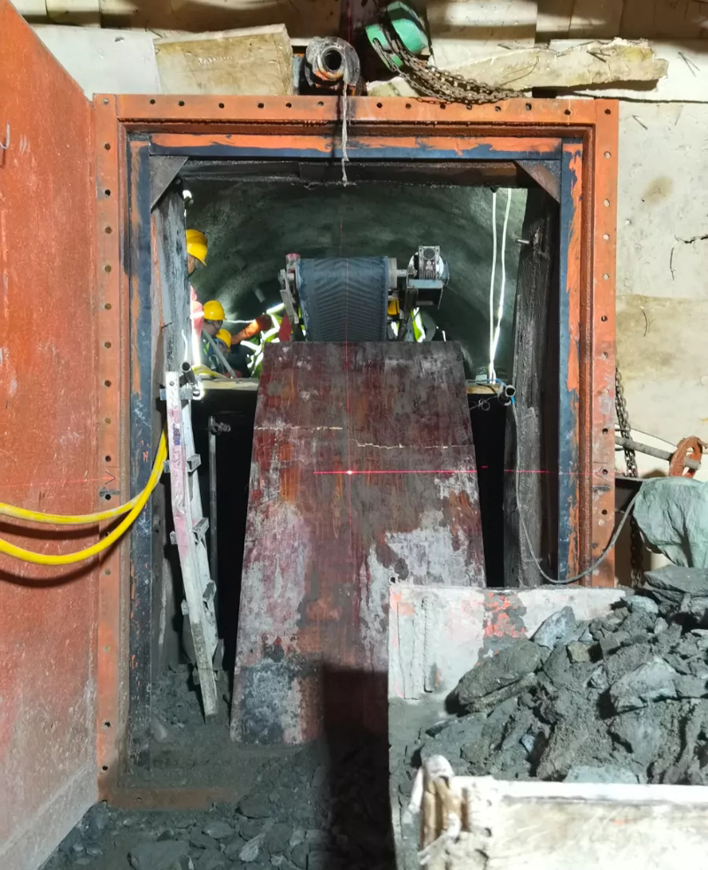 在该联络通道开挖施工过程中,建设单位进行了风险提级管理,同时与各单位及专家密切沟通联系,加强方案落实,做好涌水涌砂、初支失稳、洞门及拱顶坍塌、支撑体系失稳、冻胀等风险防控;组织60余名施工人员24小时轮班开挖作业,采取左右线双侧开挖、边探边挖、利用皮带机出土等措施,最终安全、顺利、快速地完成了该联络通道开挖及初支。