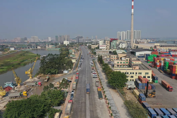 沿江路南段是高明区重要的进港道路,建成通车后大大方便珠江货运码头、海普饲料、中央粮库、溢达热电厂等企业货物运输及员工通勤,同时为佛山港高明港区高荷码头工程的建设提供重要运输通道,助力营造良好的道路运输与口岸营商环境,提高区内企业综合竞争实力。