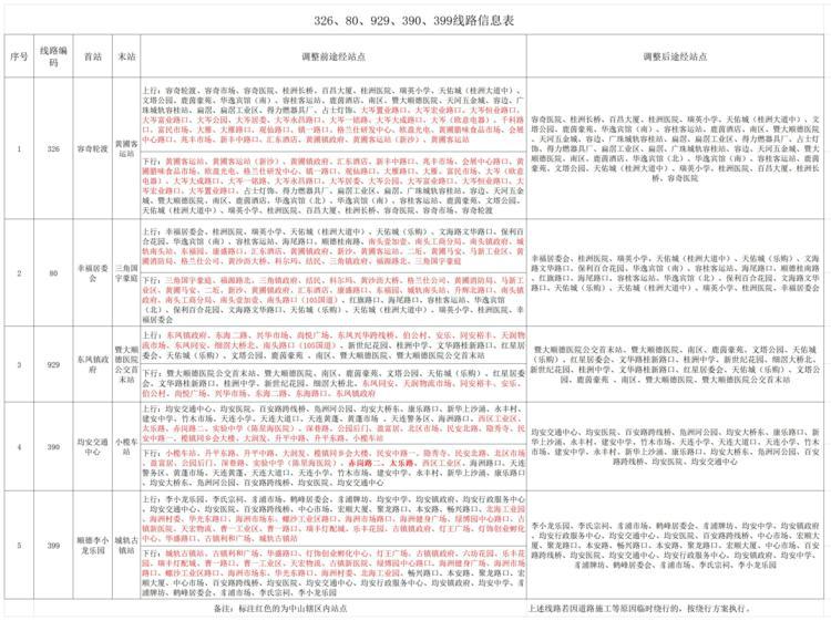 佛山市交通运输局对途经中山市辖区的80、326、390、399、929等5条公交线路实施临时调整,通告如下: