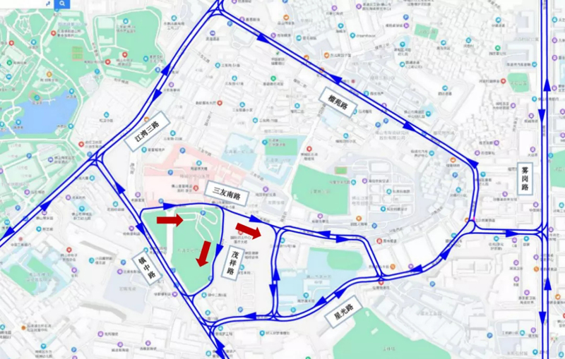 现状行车方向为从茂祥路进入三友南路(单向双车道):
