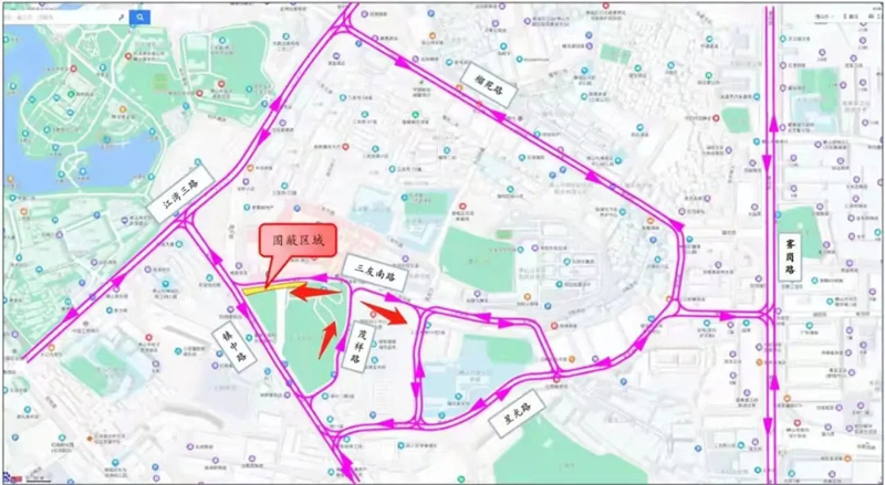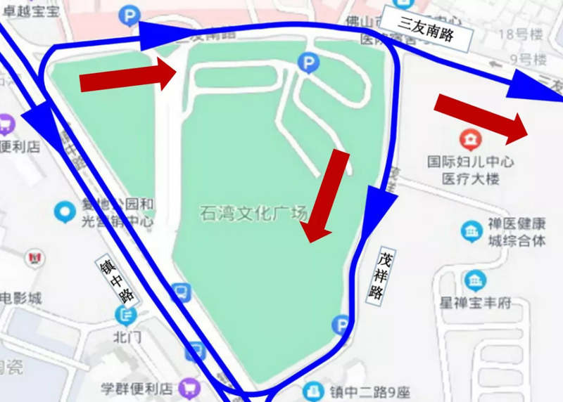 17日早上7点30分起,恢复原道路通行方向:从镇中路进入三友南路(单向两车道)。