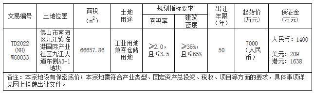 八、自本次公告起至网上挂牌截止期间,如有关于本宗地竞买文件的修改、澄清、说明等将通过网上交易系统以及佛山市南海区人民政府网发布,请有意参与竞买者密切留意。其它未尽事宜,详见本宗地的网上挂牌出让文件。