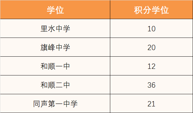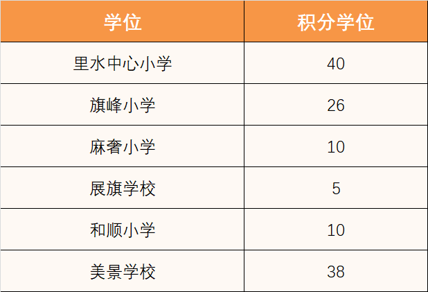 3、全镇的积分学位向家长展示,开始家长选校环节后,先由最高积分的家长第一个选取入读学校,被选取的学校剩余的积分学位则对应减少一个;然后轮到顺序号为2号的家长选择入读学校,如此类推。学校的积分学位额满即止,直至全部家长选校结束。