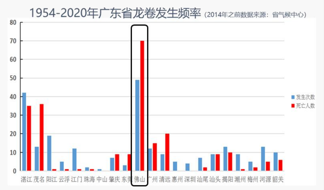 据悉,佛山市是龙卷风等强对流天气高发区,龙卷风年平均发生近1.5个(全省年平均4.3个),2006年以来全市已累计出现了27个龙卷风。