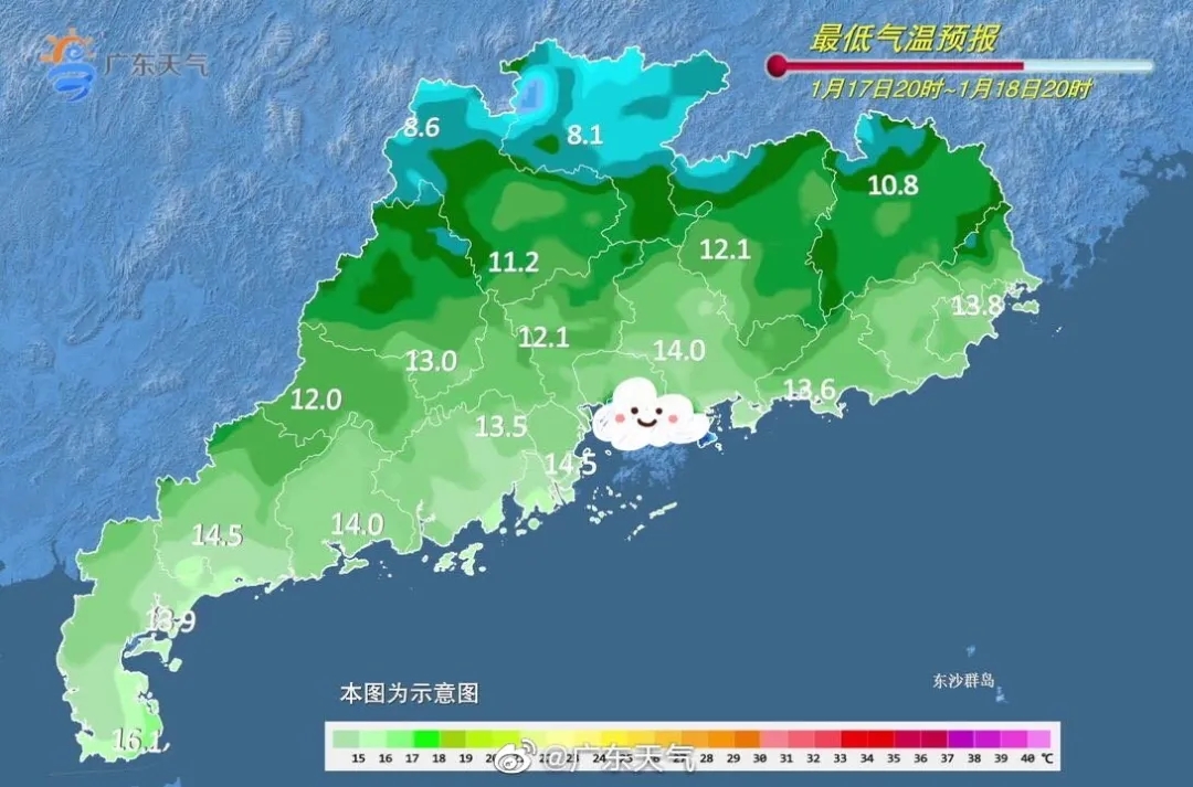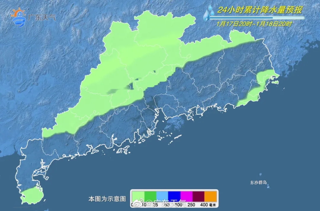 @广东天气,预计,17-18日受冷空气南下影响,全省过程气温下降3~5℃,韶关和清远的部分市县有中雨,其余市县有零星小雨;19日冷空气影响减弱,白天气温回升。出门别忘了添衣和带雨伞呀!