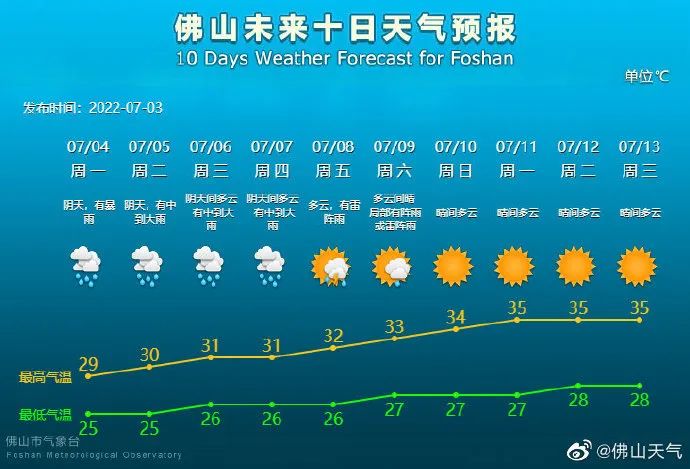 根据天气预报,今天白天仍有大雨到暴雨,而佛山大雨天气将持续到本周四,大家要注意安全!