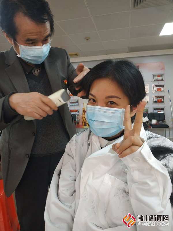 2月13日,佛山市支援湖北第四批医疗队出发,共322人出征。为了方便战疫工作,驰援湖北在即,南海区第四人民医院有医护人员赶紧理了个短发。(来源:南海区第四人民医院)