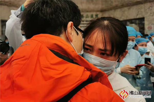张四发是市一医院lCU的一名护理人员,今日他将随队伍出征驰援武汉。临行前,妻子冯月霞给了他一个紧紧的拥抱,里面包含了无限的不舍和鼓励!(来源:佛山市第一人民医院)