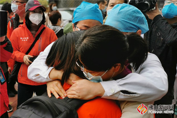 在顺德第一人民医院(南方医科大学顺德医院),同事、亲友们来为即将赴湖北的医护人员送行,送上祝福。(记者:李攀)