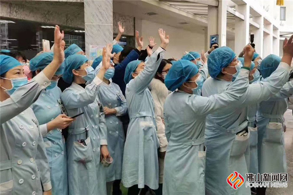 “再见!我们的战友!祝你们早日战胜病魔!”临行前,同院的医护人员纷纷挥手道别,送上美好祝福。