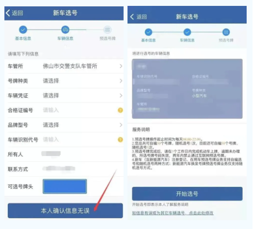 2、选号时系统会要求确认车主信息,请务必确认与选号车辆购买人(单位)一致后再进行选号操作。