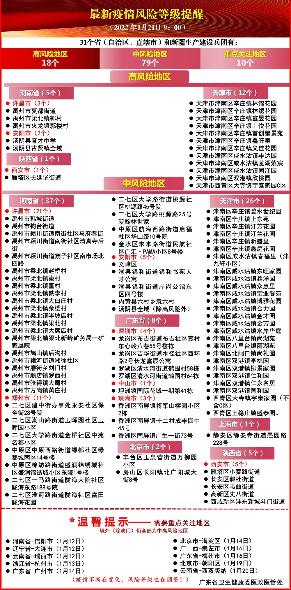 1月19日,广州市新冠肺炎防控指挥办交通运输防控专班发布提醒:2022年1月16日至19日期间,国际快递快件的收件人员,请立即完成1次核酸检测。