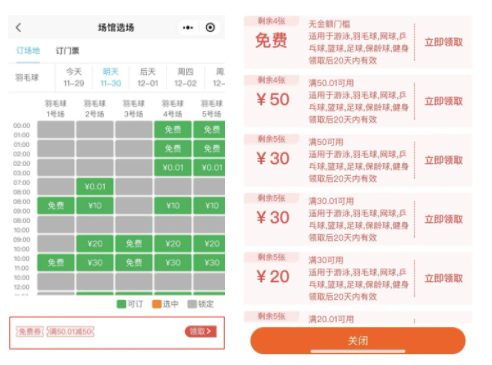 #转盘抽取的订场消费券每天有一定的使用限制,使用前可先浏览场馆每天订场消费券限额情况