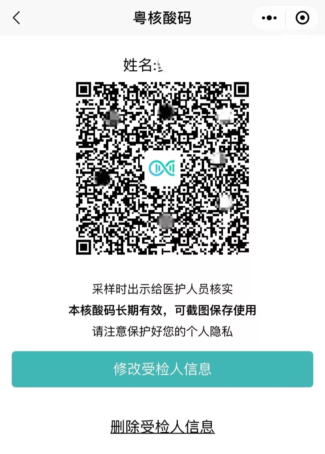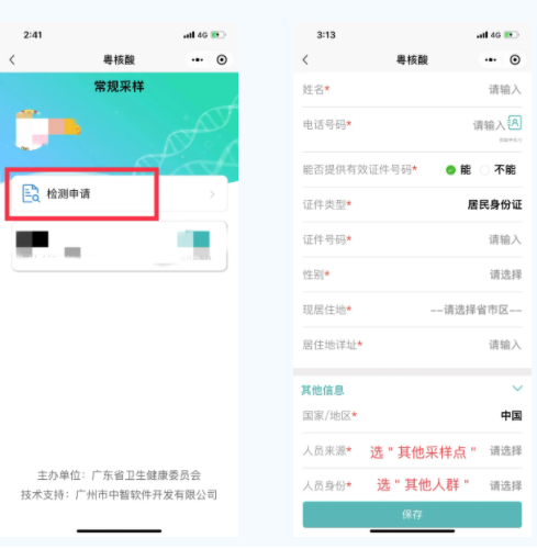 注意!必须提供身份证,并正确填写身份证号码(注意大小写)、姓名、联系电话等(带*号都需要填写)并保存信息,否则检测机构无法上传检测结果,受检人无法查询到检测结果!