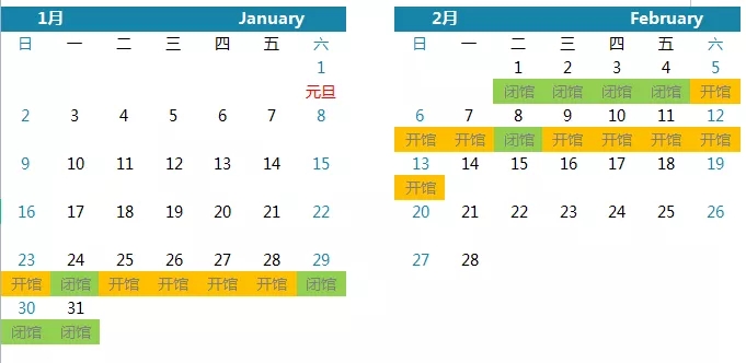1月29日至2月4日闭馆;
