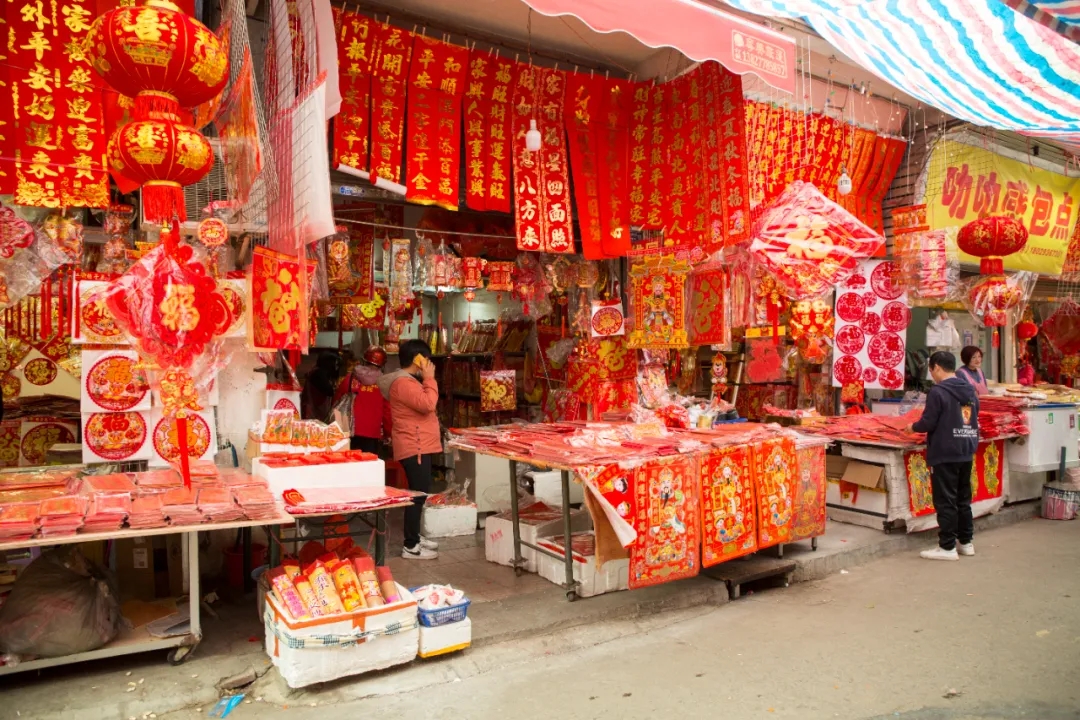 在三水,最热闹的“挥春街”就是红卫大街了,每年临近春节的时候,来这里购买春联的街坊络绎不绝。除了春联以外,还有各种红包、灯笼、窗花等年货,品种多样,价格实惠。