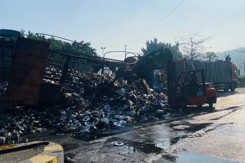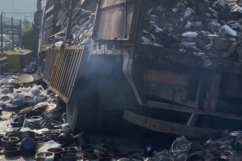 顺德一货车撞上路墩,30万元蒸笼被烧成废品