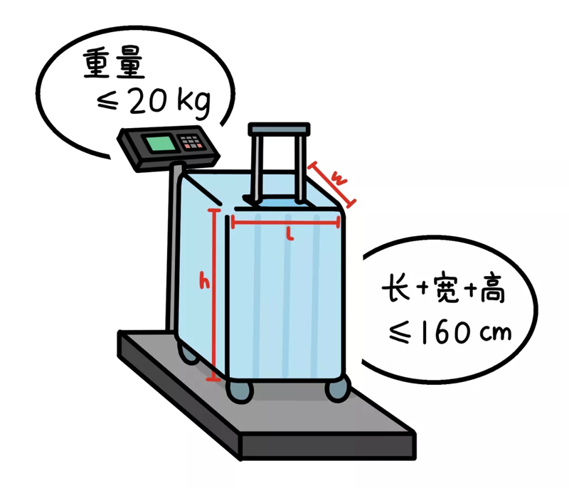 根据铁路部门相关规定,旅客免费携带的每件物品,外部尺寸长、宽、高之和不超过160厘米,重量不超过20千克。