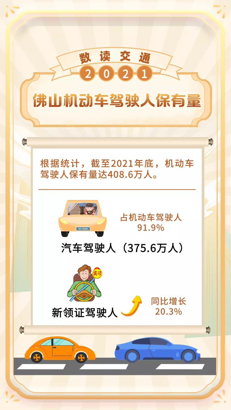 根据统计,截至2021年底,机动车驾驶人保有量达408.6万人,全省排名第三(仅次于广州、深圳),其中汽车驾驶人375.6万人。