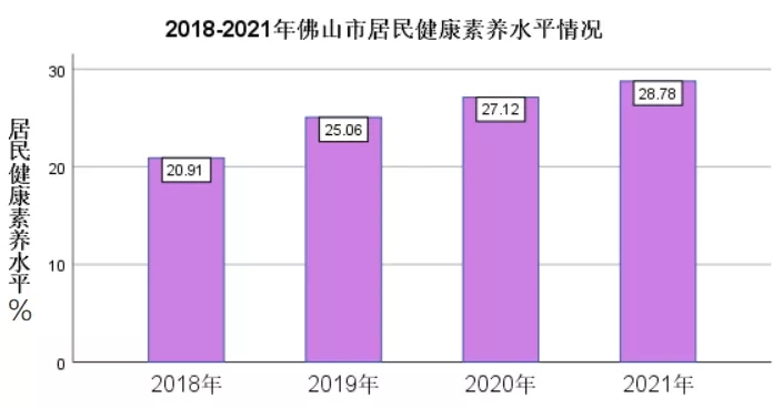 据了解,佛山市从2018年起连续4年开展居民健康素养监测工作,2018-2021年全市居民健康素养水平分别是20.91%、25.06%、27.12%、28.78%,全市居民健康素养水平呈逐年上升态势。