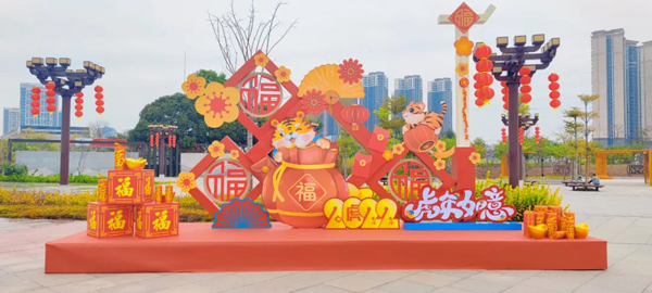 琳琅满目的春联、挂饰和喜庆的灯笼
