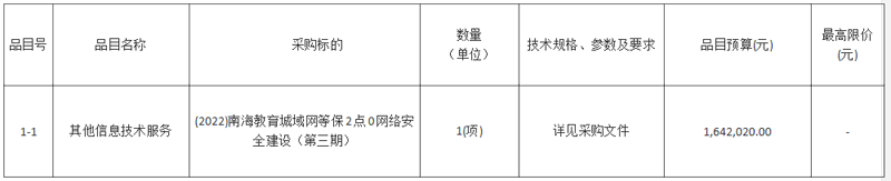 (2022)南海教育城域网等保2点0网络安全建设(第三期)采购项目的潜在供应商应在广东省政府采购网https://gdgpo.czt.gd.gov.cn/获取采购文件,并于 2022年07月19日 09时00分 (北京时间)前提交响应文件。