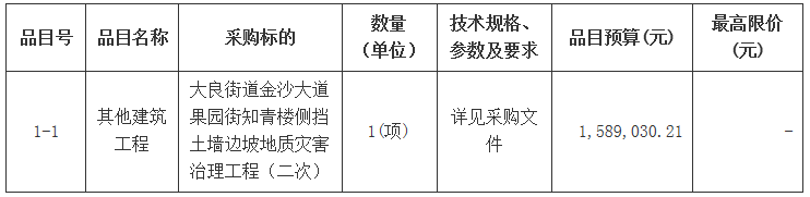 合同包1(大良街道金沙大道果园街知青楼侧挡土墙边坡地质灾害治理工程(二次)):