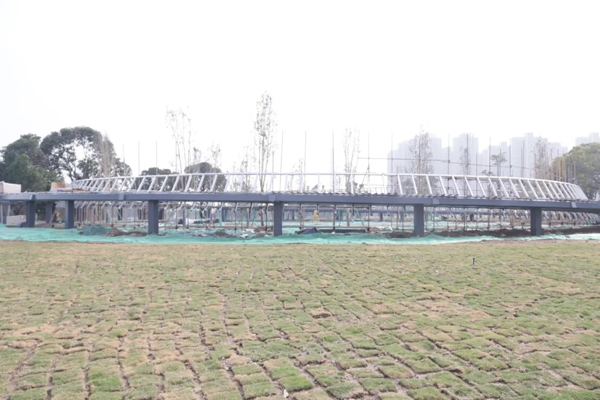 据了解,半月岛公园整体预计2022年5月完工,未来,市民可以在空中连廊俯瞰远眺东平河园内,还可以观赏到落羽杉倒映在湖面上的秋日美景。
