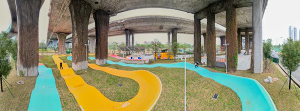 极限运动公园总面积约2.8万平方米,位于平胜大桥底(半岛路侧),一改市民对桥下空间昏暗、封闭、噪音大等普遍印象,变身年轻范、时尚范的运动天地。