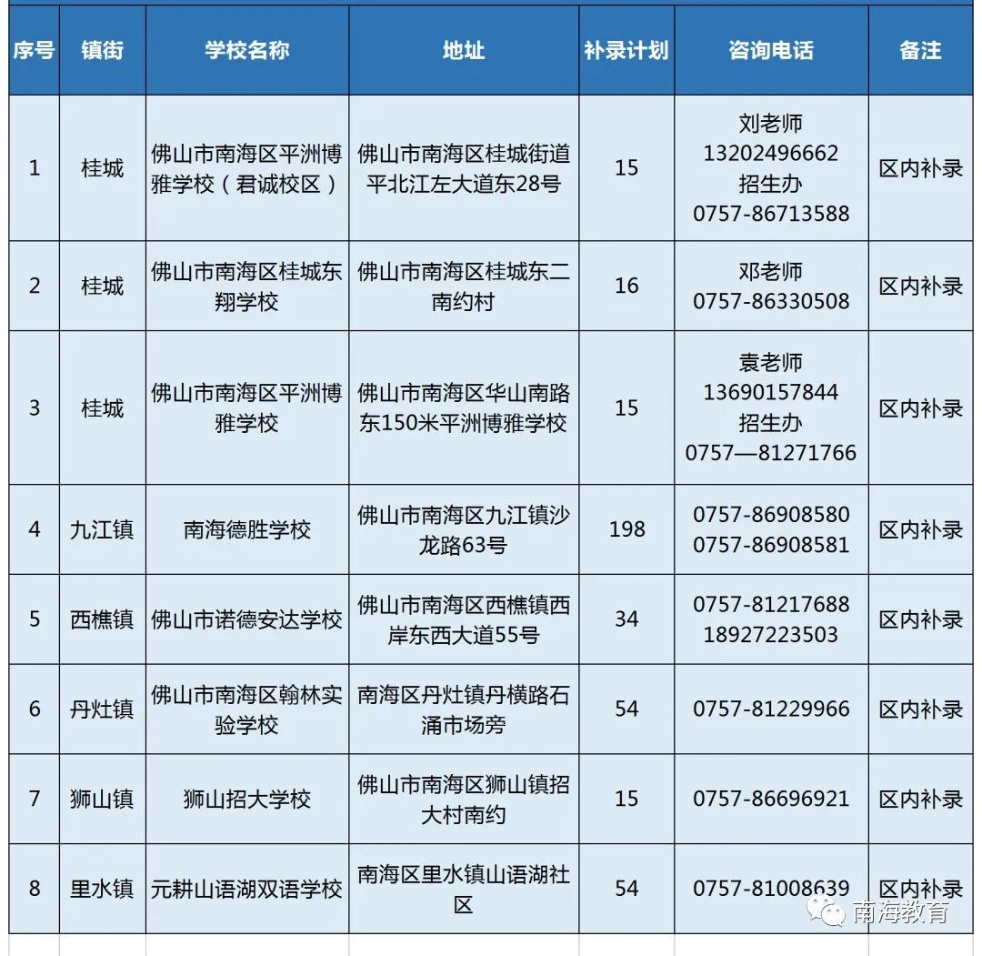 现公布南海区民办义务教育学校第二轮补录名单及补录计划,请符合补录条件的家长自行联系学校进行补录。