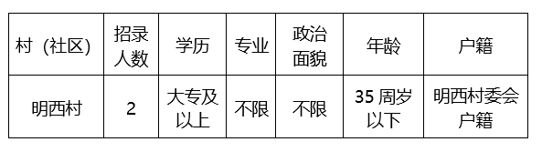 明城镇招聘村(社区)党群服务中心辅助工作人员报名表