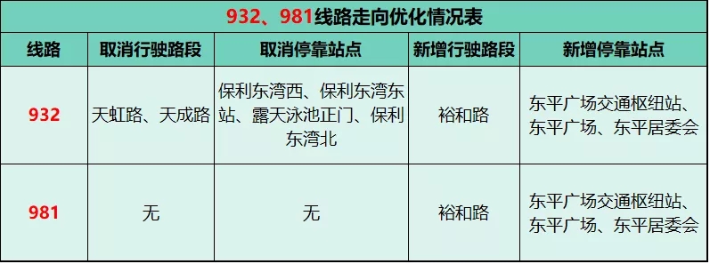 981线路调整后信息表