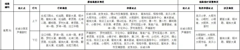 二、途经南海区狮山(镇/街道)大朗新村居住区的南高31公交线路在大朗新村等公交站暂时取消停靠;
