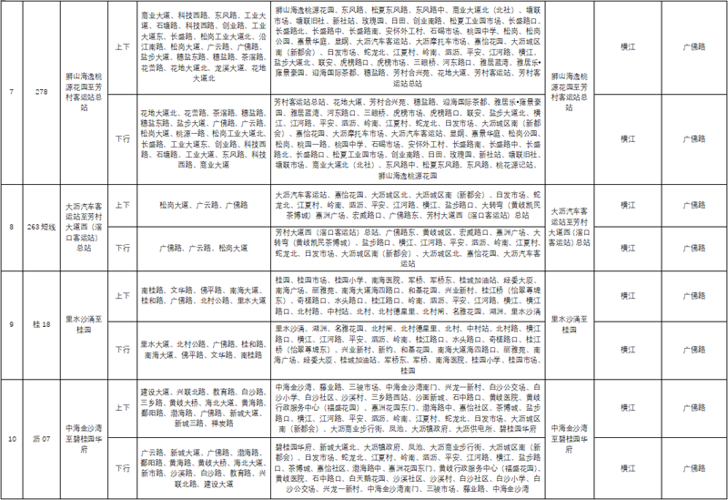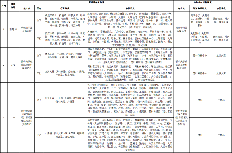四、疫情应急防控期间,公共交通运营将根据疫情分级分类进行动态调整,敬请留意“佛山公交”“南海出行”等微信公众号和站台现场公示信息。