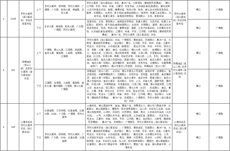 一、途经南海区大沥(镇/街道)银丰花园居住区的236路、251路等12条公交线路在横江公交站暂时取消停靠,详见附表;