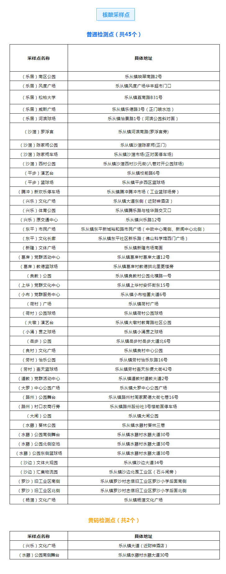 全镇开设45个普通检测点,2个黄码检测点(详情请查看下方表格)
