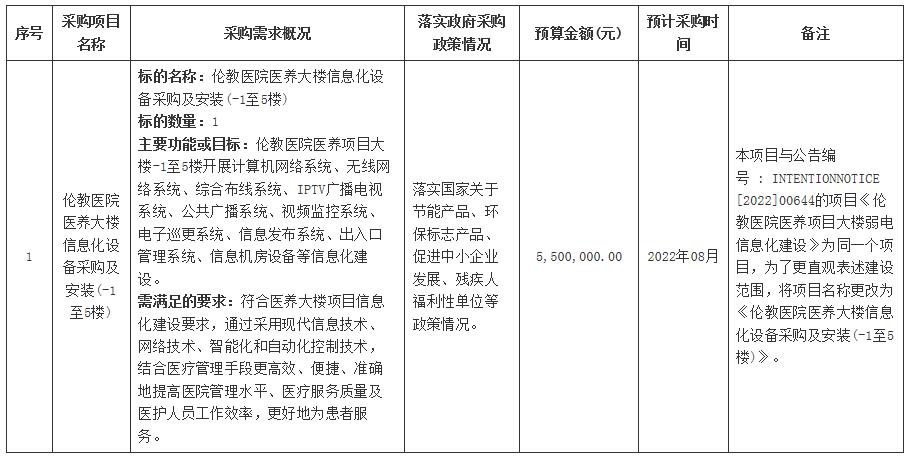 佛山市顺德区伦教医院2022年07月至2022年08月政府采购意向